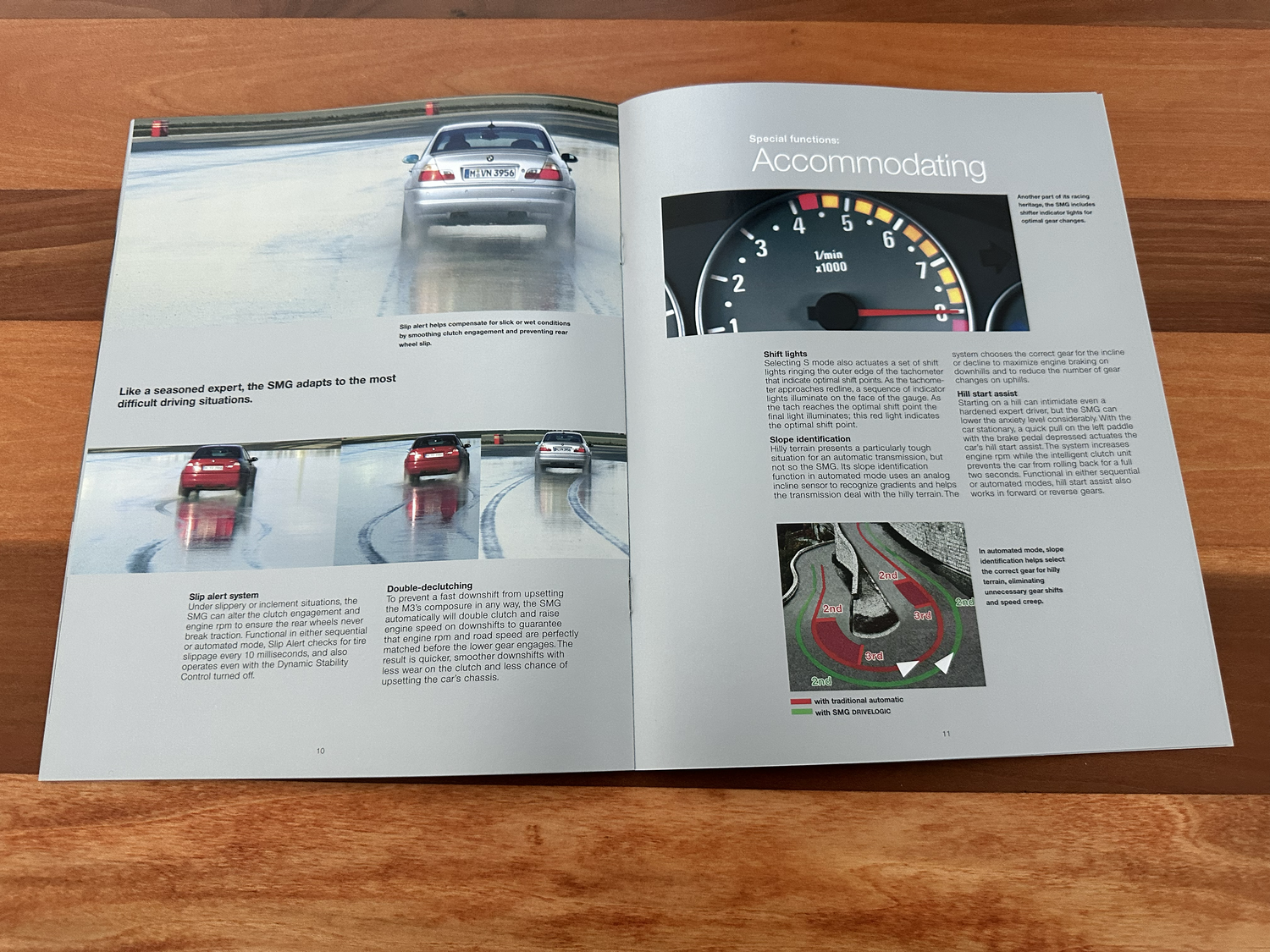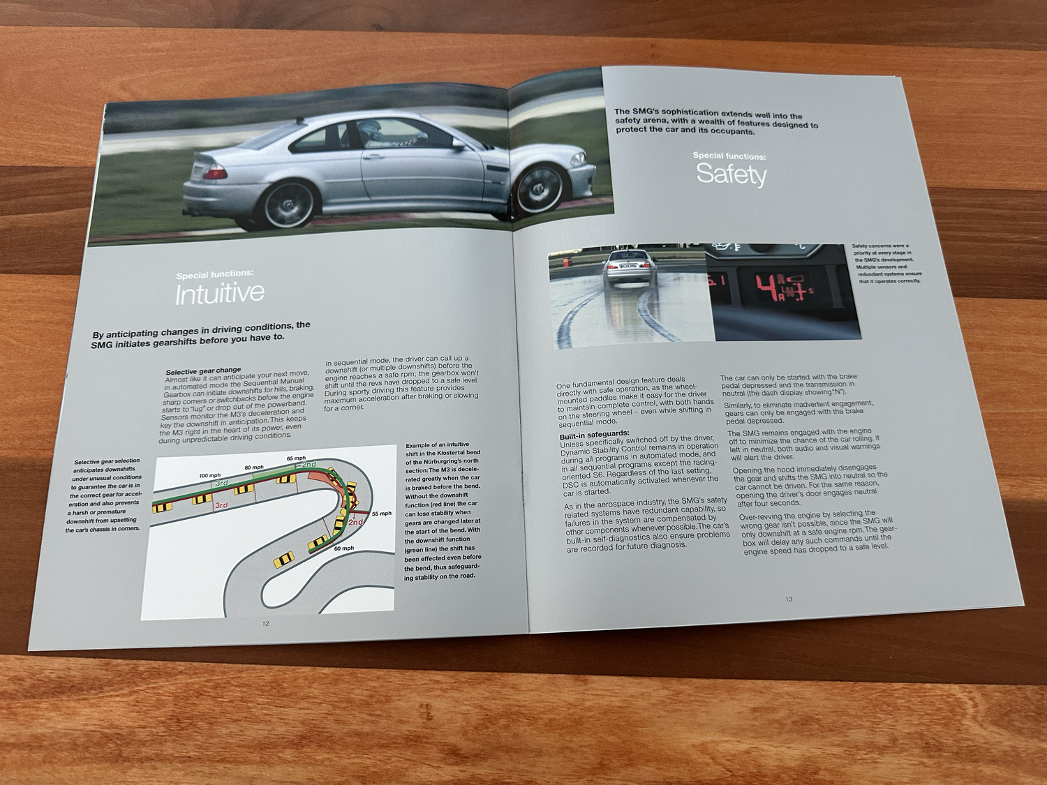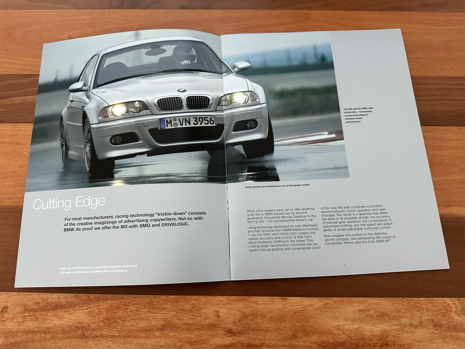 2003 BMW E46 M3  SMG with Drivelogic brochure.