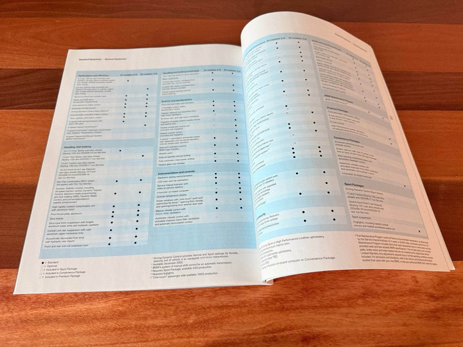 2003 BMW E85 Z4 Roadster dealership sales brochure.