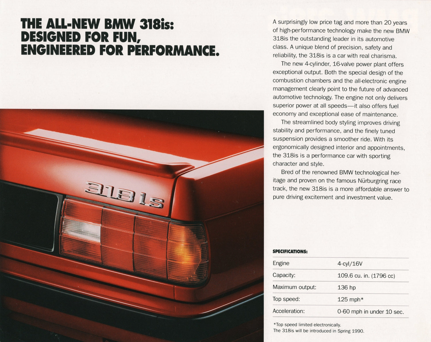 1990 BMW E30 318is technical card.
