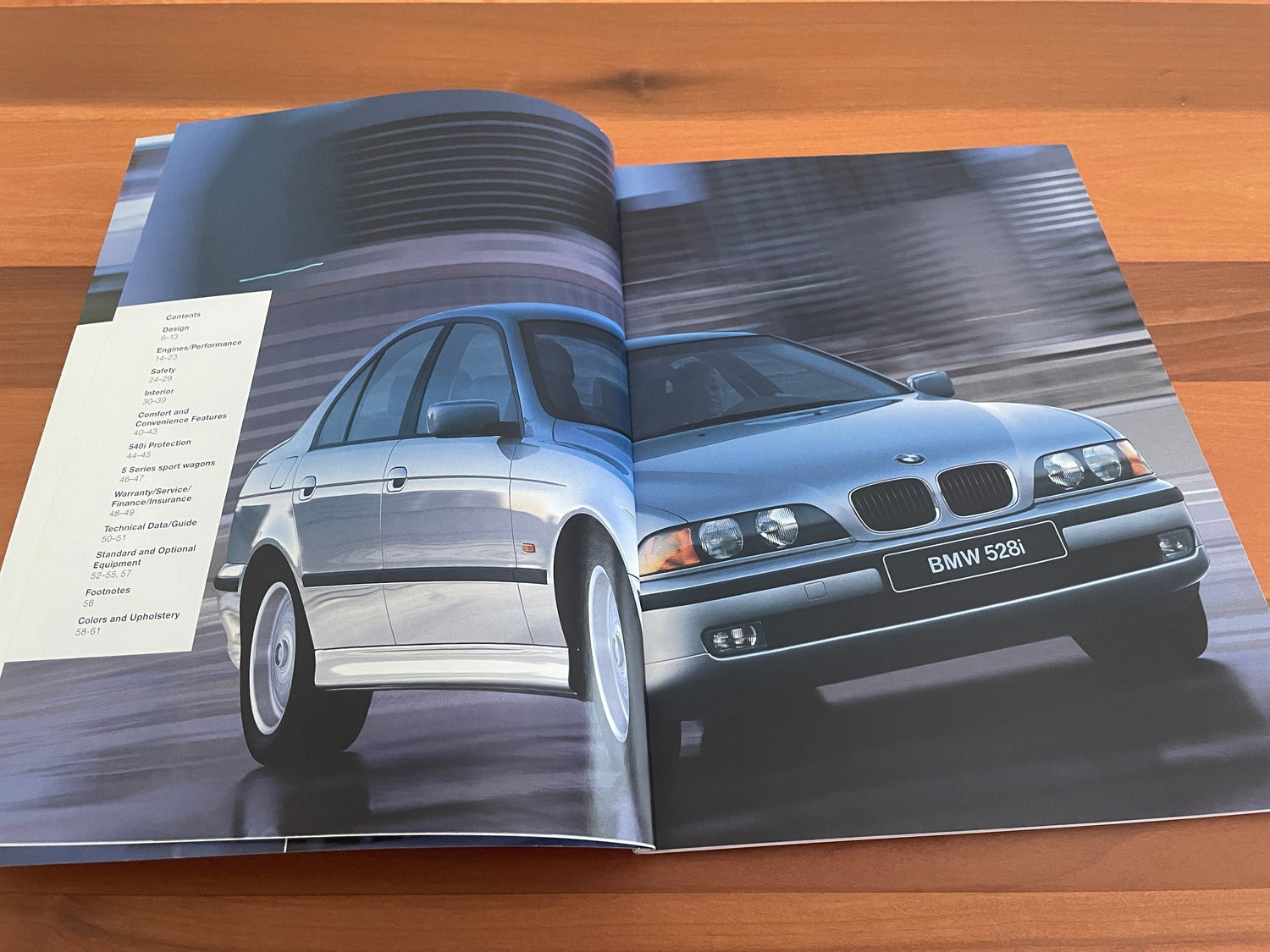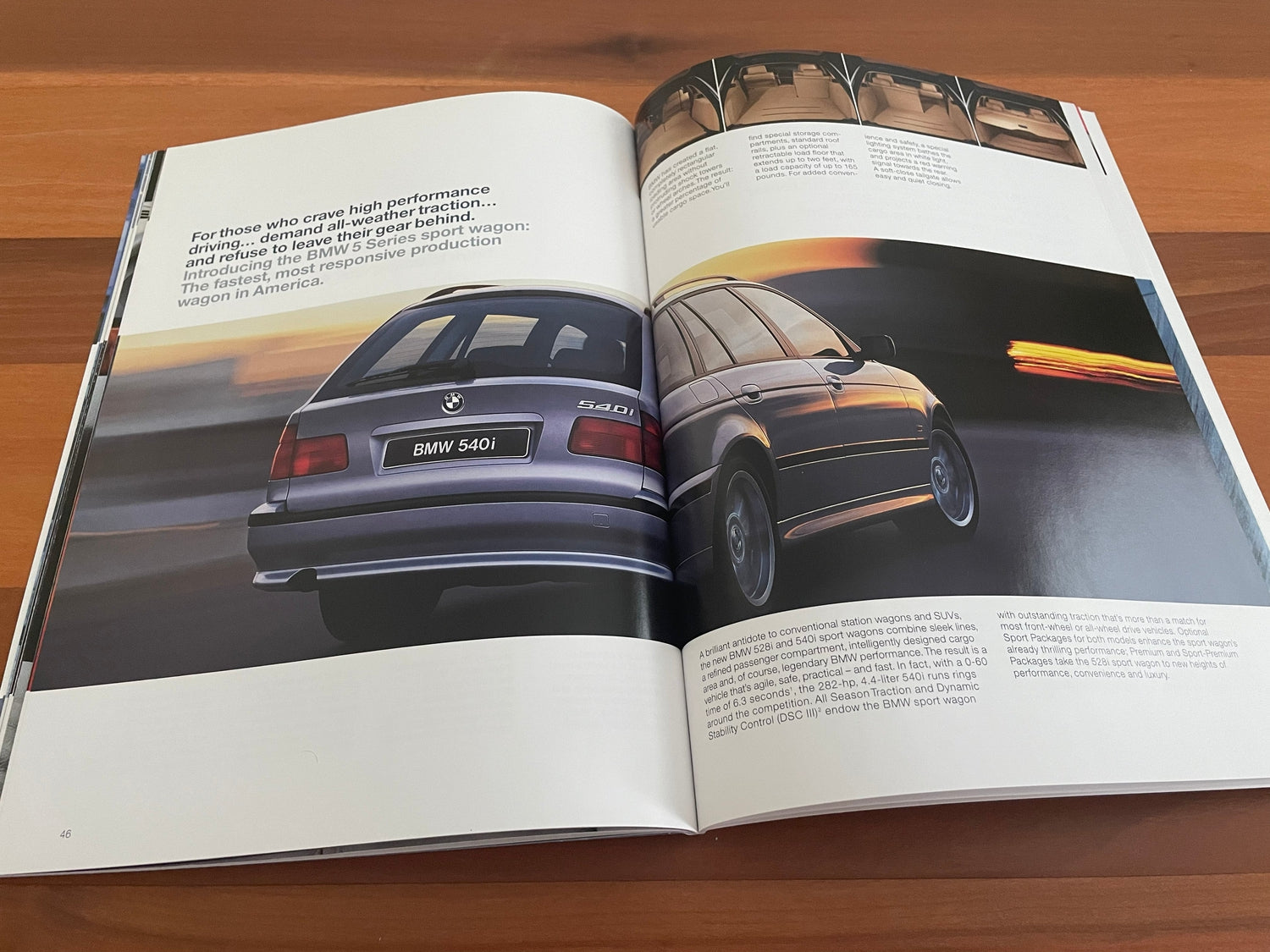 Information on the design, engines, performance, safety, interior, comfort and convenience, 5 series sport wagons, warranty, service, finance, insurance, technical data, standard and optional equipment, paint colors and upholstery.