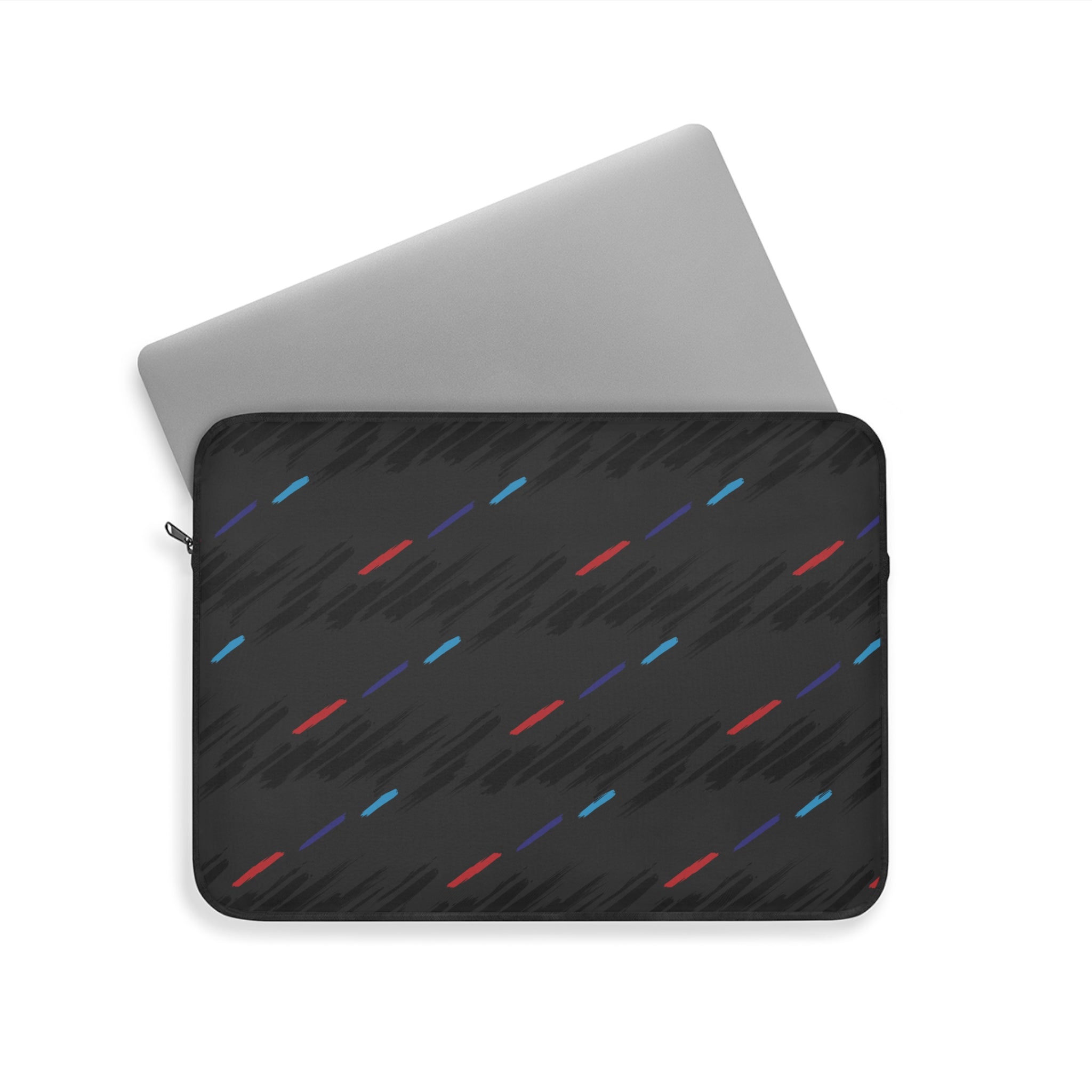 Carry your laptop with style! This high-quality Hurricane laptop sleeve is available in three sizes to protect your laptop from scratches and minor impacts. Printed on one side with a black backside, edging, and zip, it's an elegant and stylish companion from day to day.