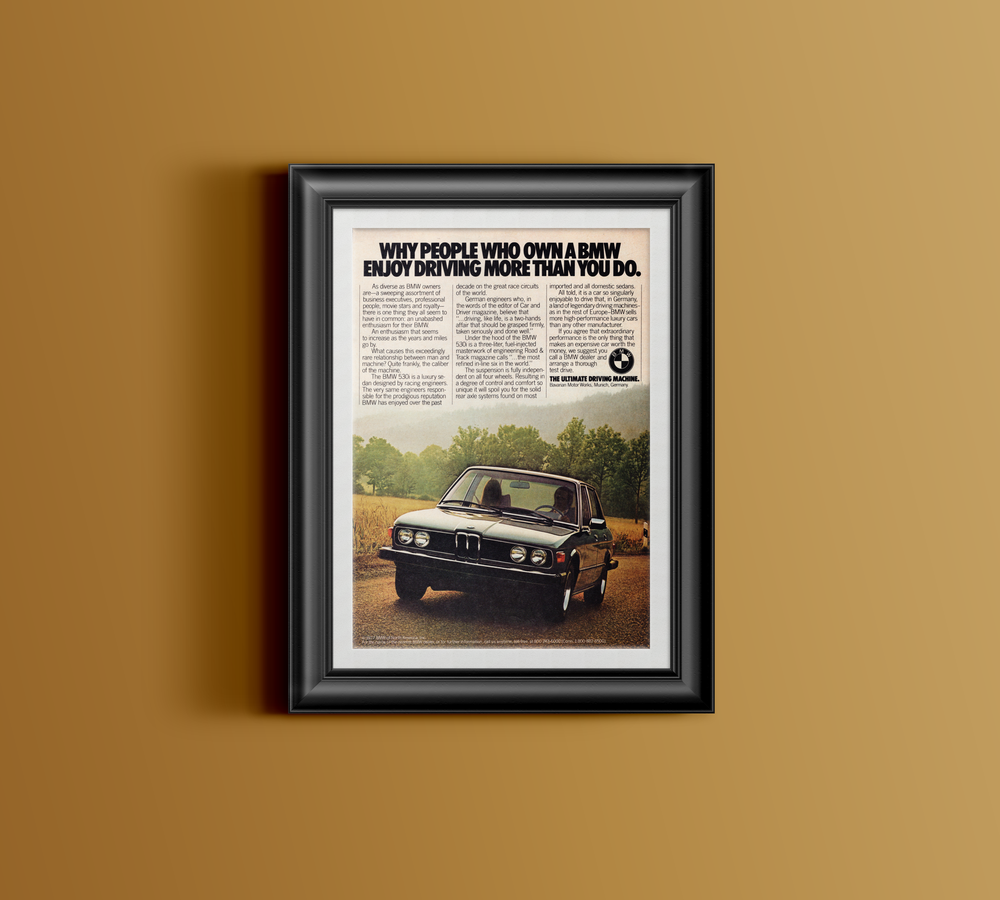 Original print, vintage BMW E12 530i magazine advertisement from 1977.
