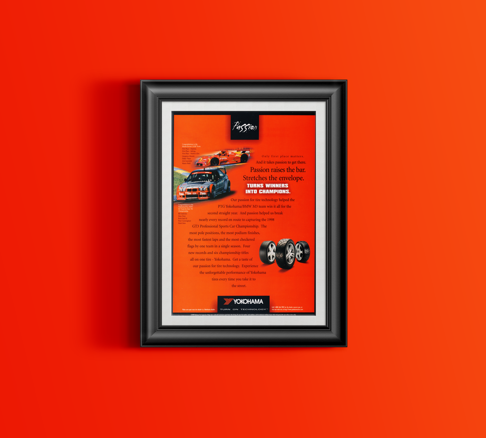 Original print, vintage BMW E36 M3 Yokohama magazine advertisement from 1998.