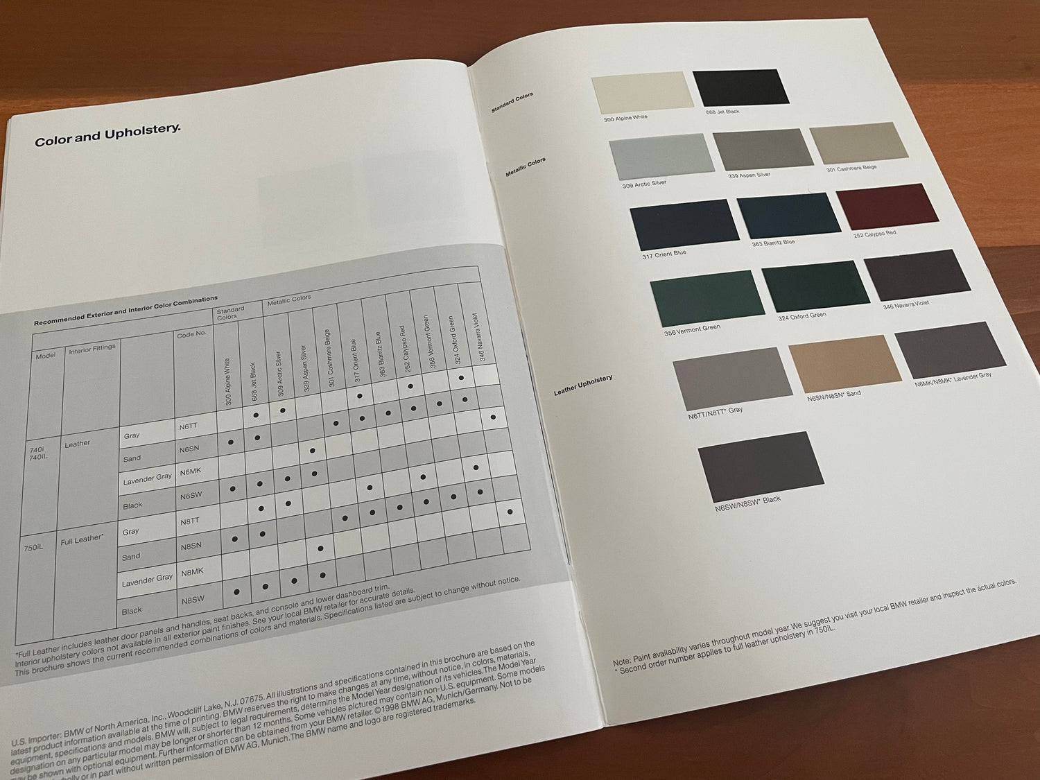 1998 BMW E38 740i/iL & 750iL dealership sales brochure.