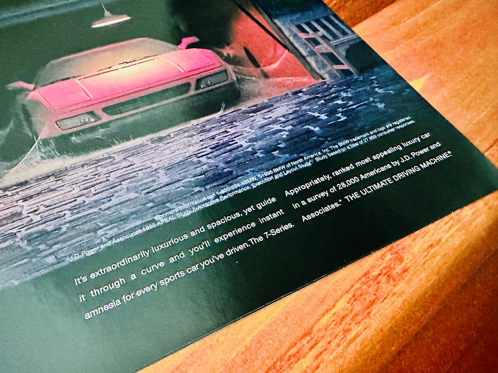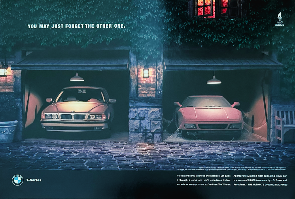 "You may just forget the other one. It's extraordinary luxurious and spacious, yet guide it through a curve and you'll experience instant amnesia for every sports car you've driven. The 7 Series. Appropriately, ranked most appealing luxury car in a survey of 28,000 Americans by JD Power and associates. The Ultimate Driving Machine."