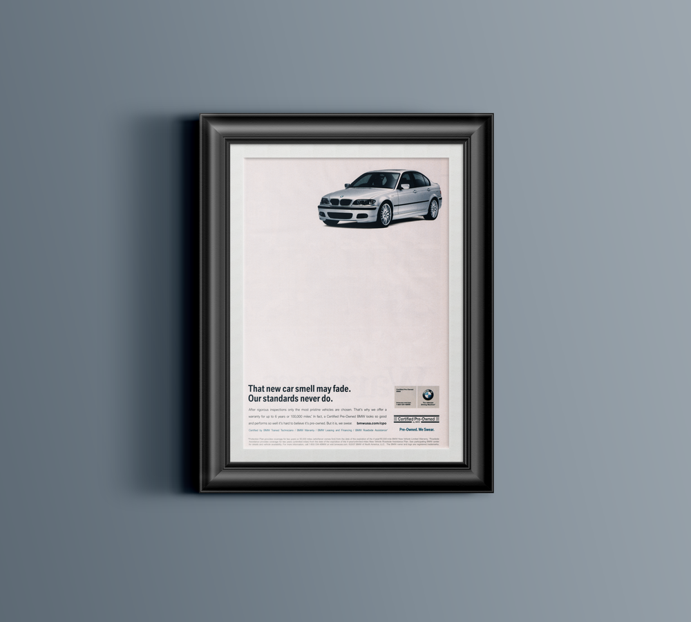 Original print, vintage BMW E46 Sedan Certified Pre-Owned magazine advertisement from 2007.