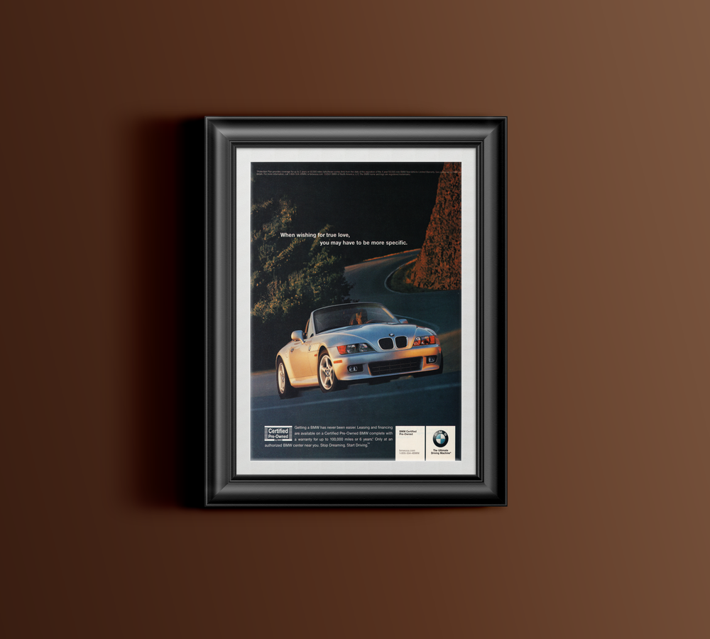 BMW Z3 Certified Pre-Owned magazine advertisement from 2001.